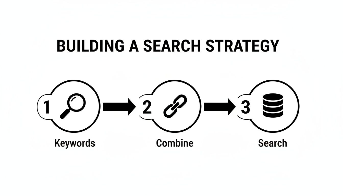 This diagram illustrates how a simple, three-step process—identifying keywords, combining them logically, and executing the search—forms the foundation for gathering the papers you'll eventually need to synthesize.